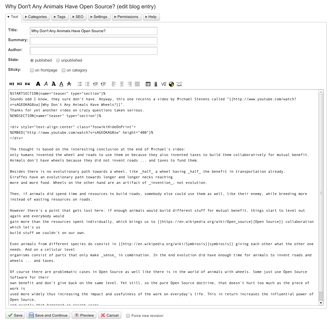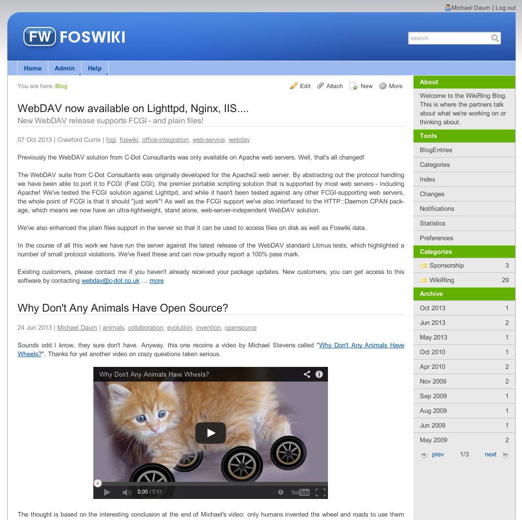 23 Jan 2017: improved compatibility with PatternSkin; using date2 instead of date formfield now; improved OpenGraph meta data in blog postings; disabled HyphenateContrib by default now due to typography issues; fixed calculation of comments; fixed rendering of breadcrumbs; fixed solr-based blog search; display type hierarchy on CompleteDocumentation now; improvements to FrontPageViewTemplate, RenderArchives, RenderBlogEntries, RenderBlogEntryPagination, RenderBlogEntryTitle, RenderRecentBlogEntries, RenderSimilarBlogEntries; improvements to rss and atom feeds, i.e. make them cacheable by default; new WordPress importer; index a publishdate property for dbcache entries; added new default WebLexicon feature part of latest WikiWorkbench and MultiLingualPlugin; added SeoTopic to blog template to be able to create seo pages that aren't necessarily a blog posting; added translation files for almost all supported languages, still low coverage